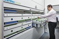 «Lektriever» компании «Kardex Remstar» – это автоматизированный склад с электронным управлением, осуществляющий администрирование нескольких тысяч носителей информации – видеозаписей, CD, DVD и т.п. В систему склада «Lektriever» могут входить до 16 шкафов по четыре выдвижных отделения в каждом. Склад может работать как автономно, так и в онлайновом режиме при его оснащении нашими ИТ-системами.