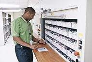 Повышенная эргономичность – Вашим сотрудникам больше не понадобится подниматься и спускаться по лестницам, нагибаться для поднятия тяжелых грузов и выполнять иные тяжелые физические операции. Каждый ящик автоматически подается к окну отбора. Окно отбора находится на эргономичной высоте и имеет подъезд для доступа с инвалидной коляски. По нашим оценкам, внедрение системы повышает производительность на 40 %.